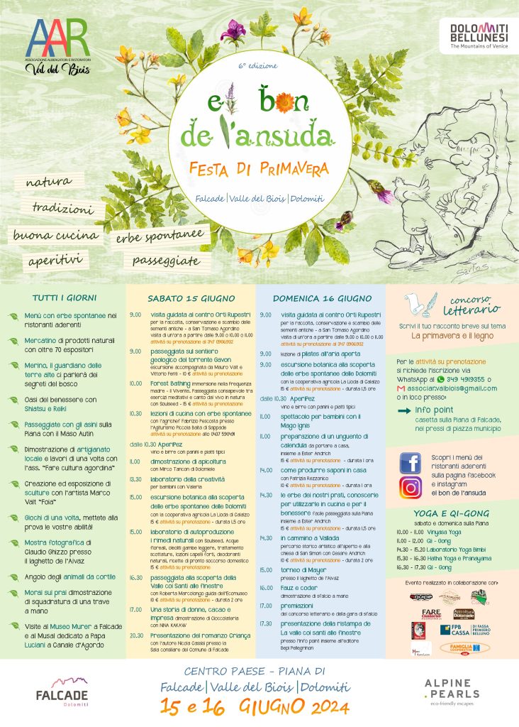 Natura, tradizioni, cucina tipica, erbe spontanee, passeggiate, aperitivi: tutto questo è la festa de El Bon de l’Ansuda a Falcade ed in Val del Biois.