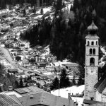 San Sebastian church overlooks the whole Val del Biois with its gothic alpine style sharp tower bell.