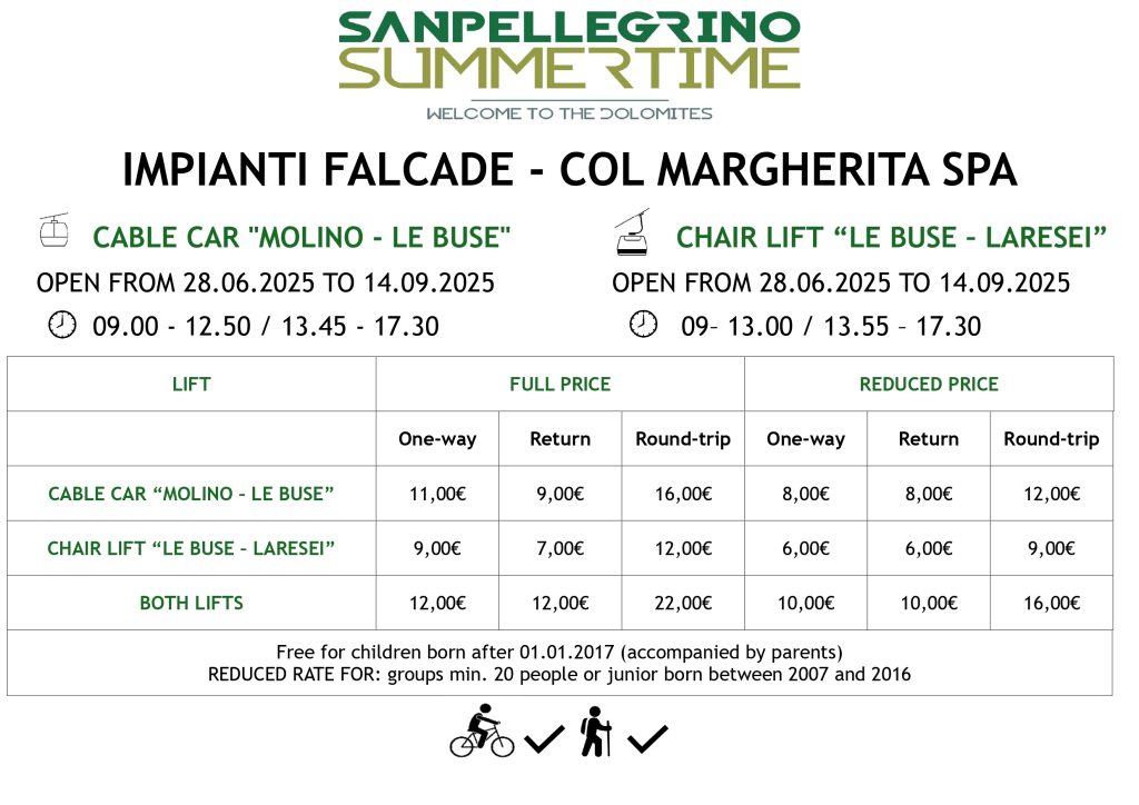 The summer season is effectively back from 21 June 2025, with the open lift facilities in the Falcade San Pellegrino tourist area!
