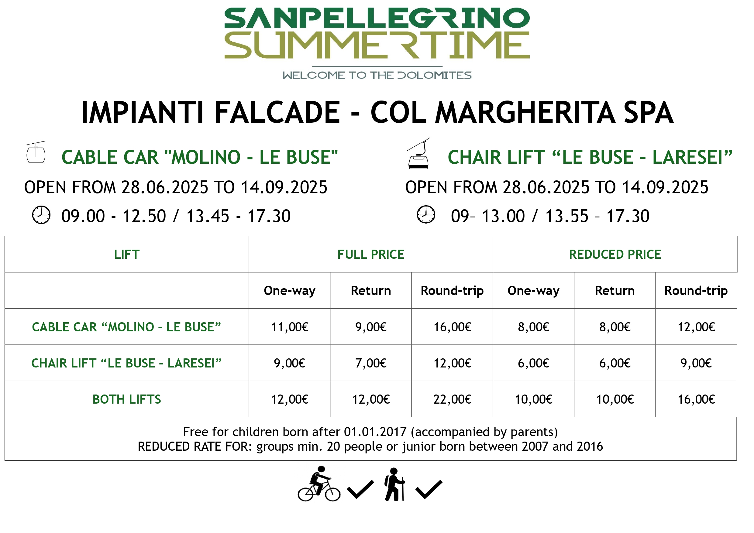 The summer season is effectively back from 21 June 2025, with the open lift facilities in the Falcade San Pellegrino tourist area!