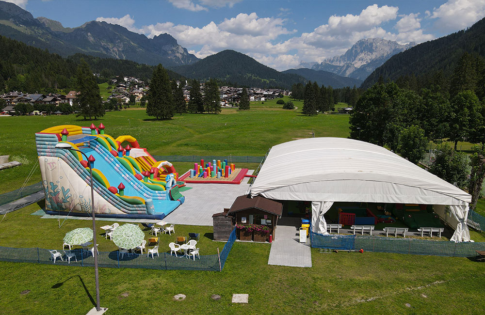Il Mondo di Nocciolino is a fun park for children aged 0 – 12, located on the Falcade Plain and equipped with fantastic inflatables and other colourful play facilities, perfect for allowing kids to let off steam in complete safety, while mum and dad can relax in the area next to the Park, where you will also find a refreshment area.