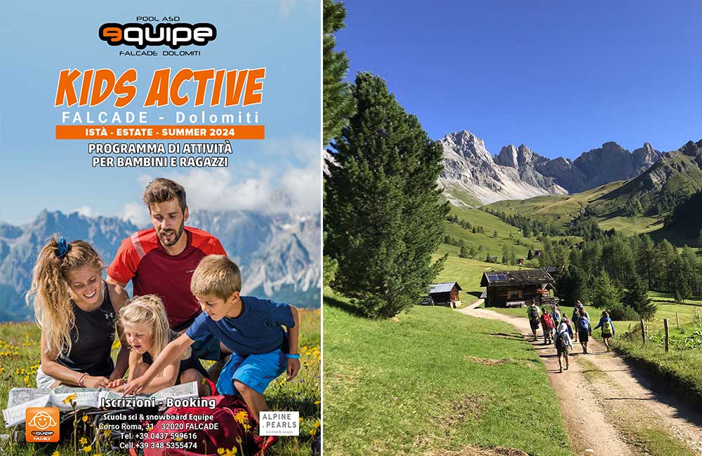 A packed programme of activities organised by the Equipe Ski School in Falcade, with KIDS ACTIVE, designed to make sure your kids have plenty of fun during the summer holidays in the Val del Biois.