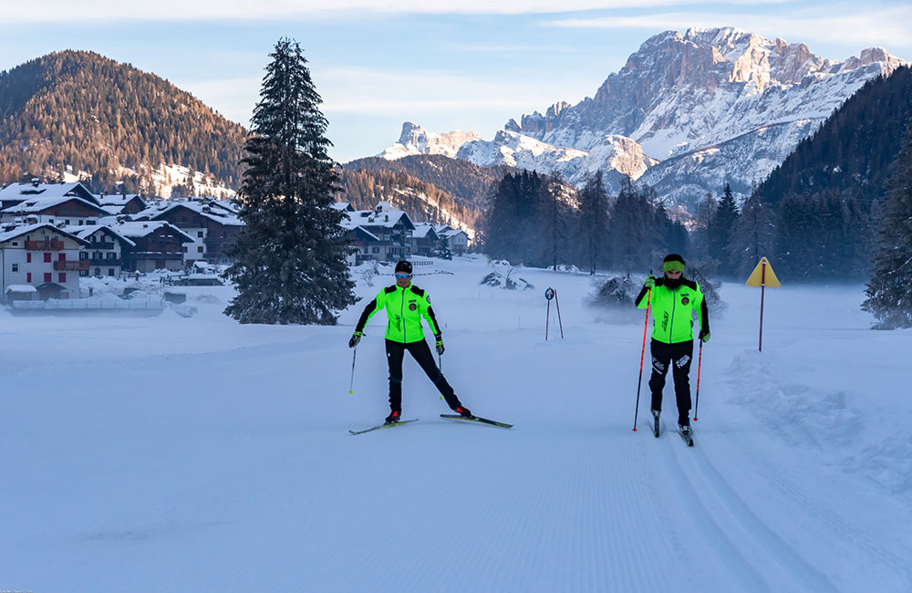 In the Biois Valley, beginners can try their hand at the discipline by taking part in the cross-country skiing courses organised by the local Falcade Italian Nordic Ski School, where both adults and children will find qualified instructors able to offer group and individual lessons in the Piana run in the centre of Falcade at the PIETRO SCOLA CROSS COUNTRY SKI CENTRE.