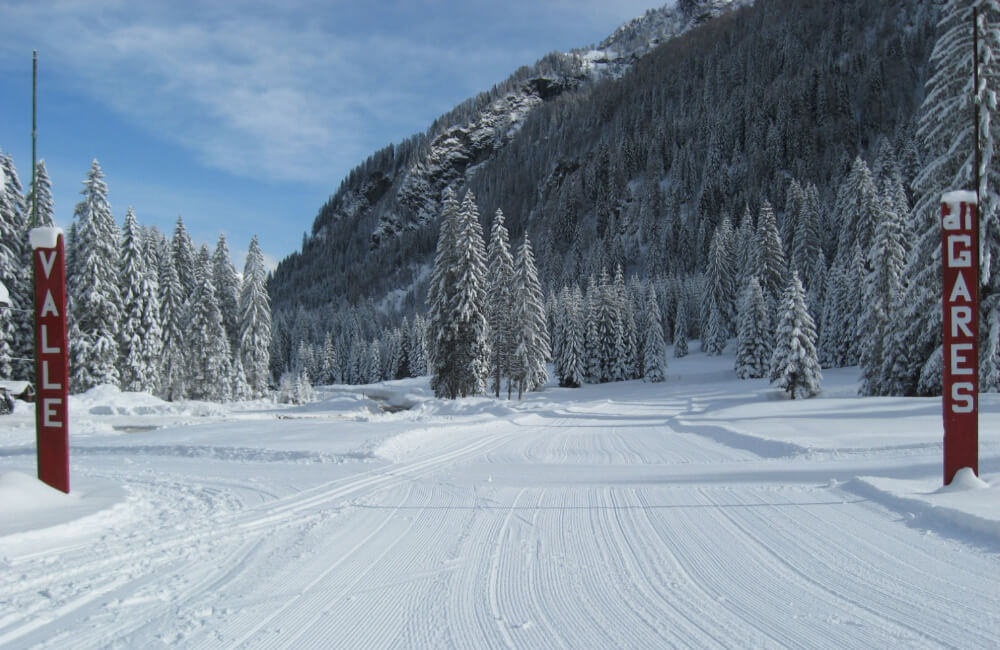 The cross-country skiing run, dedicated to the local athlete Franco Manfroi, is at the bottom of the Gares Valley, about 7 km from Canale d’Agordo.