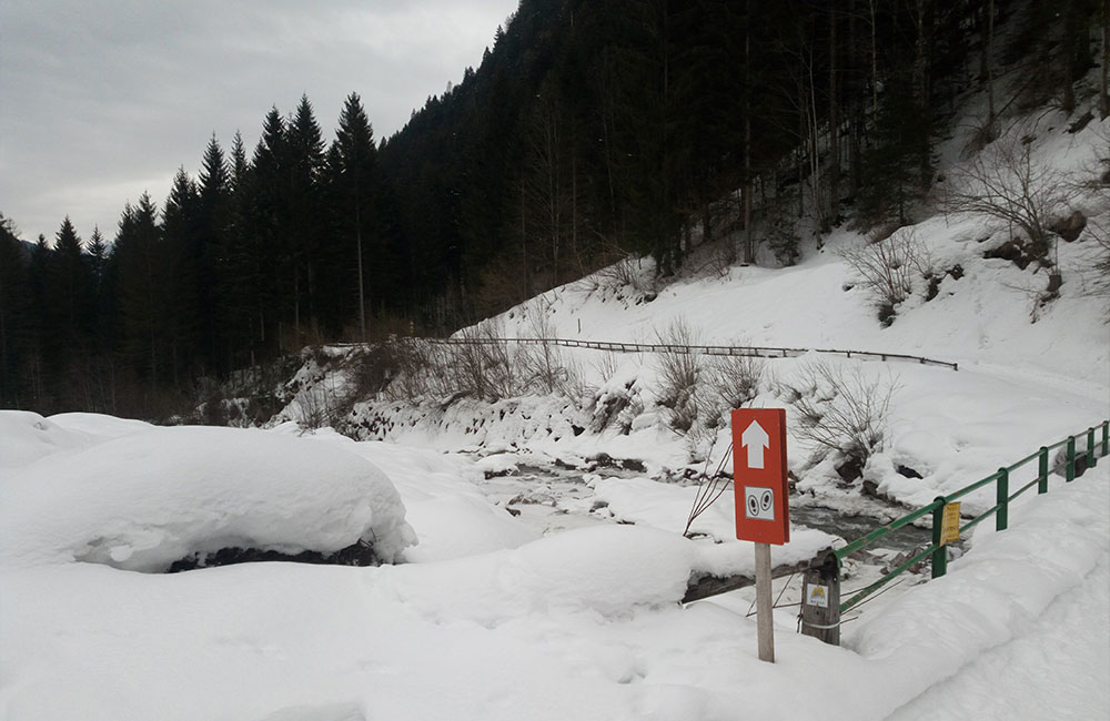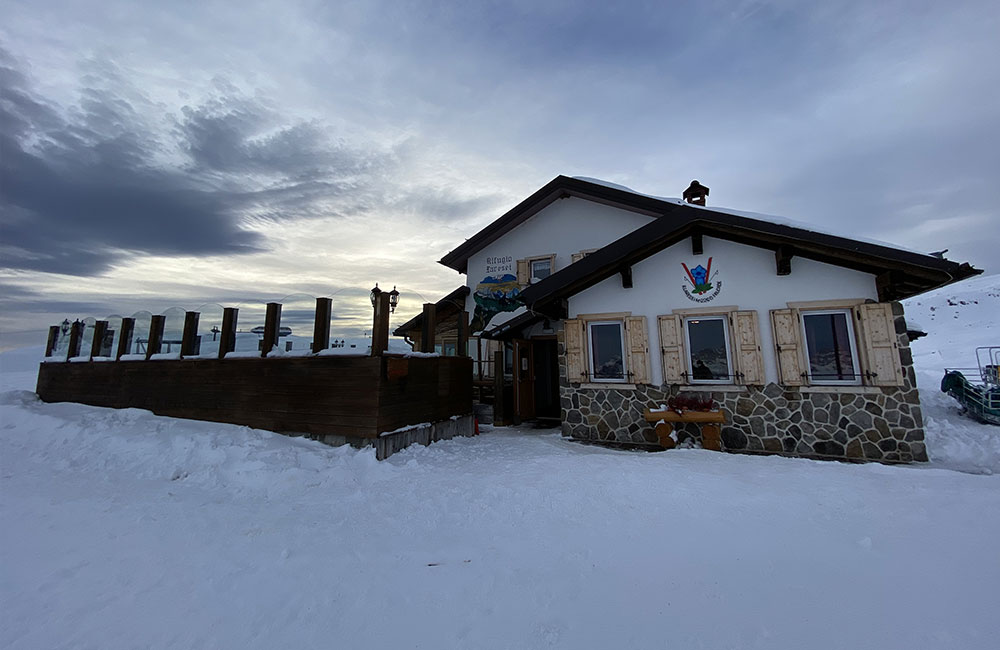 Although the winter trail to reach the mountain hut is usually well groomed, it is advisable to have crampons with you, as you may encounter icy stretches on the way down.