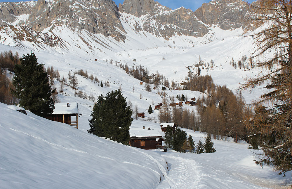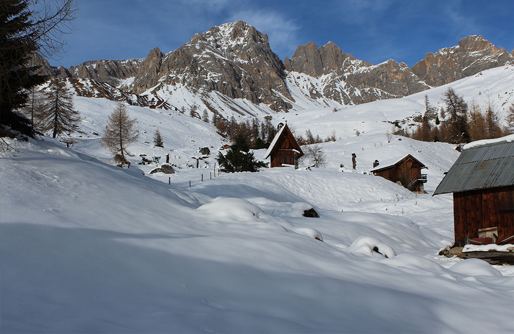 The Val del Biois offers a variety of groomed snow trails, making it ideal for walking trips on the snow, both at the bottom of the valley and at altitude, or among the higher-up neighbourhoods of the villages. No particular equipment is required other than a pair of good hiking boots suitable for use in the mountains.