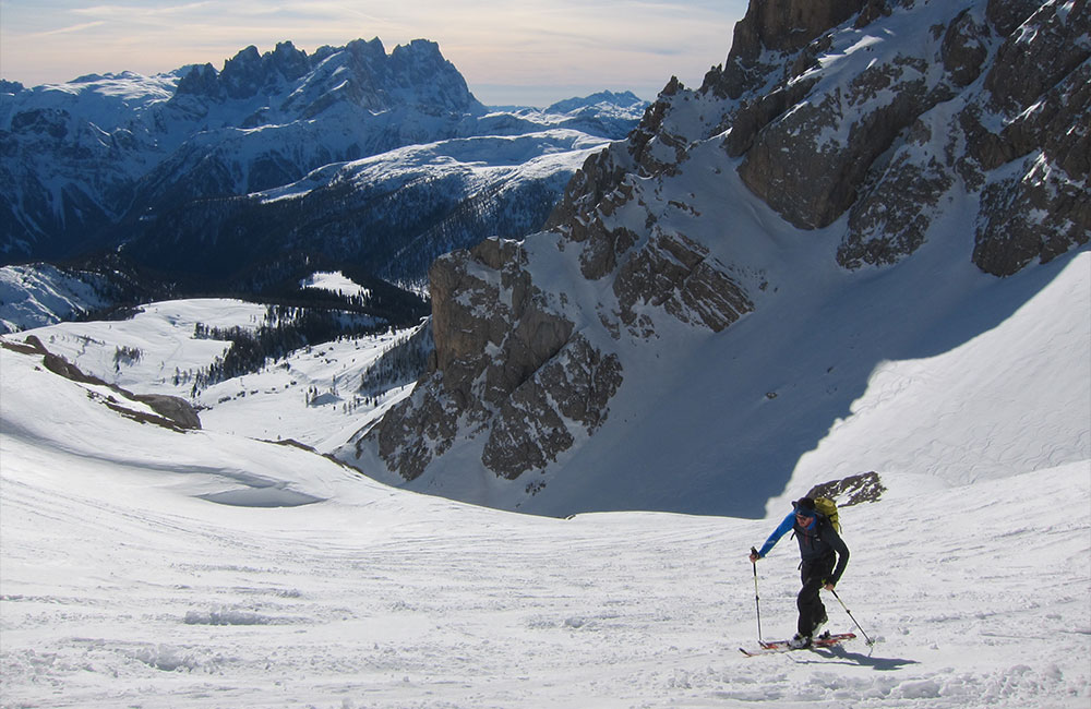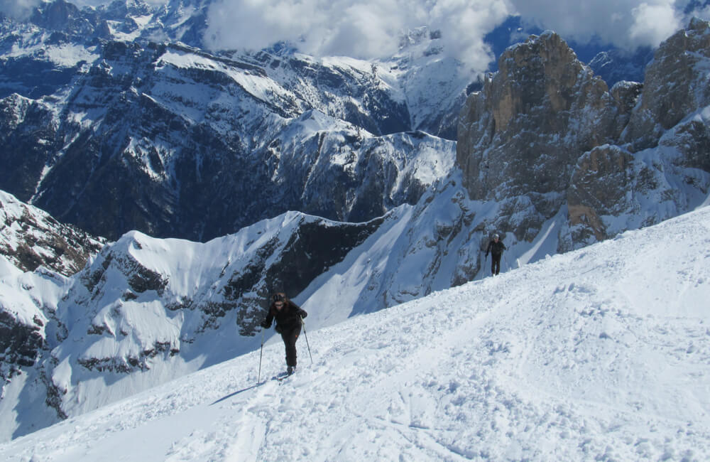 Very popular ski mountaineering route, thanks to the easy access and the interesting descent for skiers, requiring a good technical level. Possibility to extend the route with a climb up to Cime Cadine.