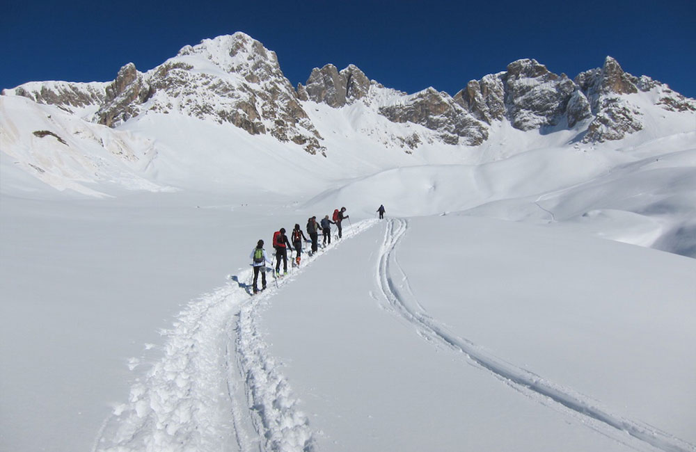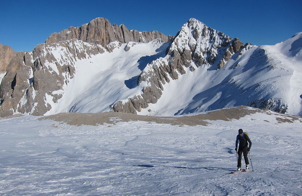 One of the great ski mountaineering classics, this easy route is suitable even for skiers of average level, and can be tackled throughout the winter, thanks to the favourable exposure to the sun and the absence of steep slopes.