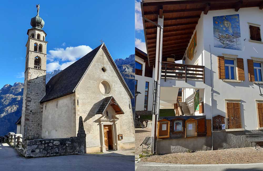 Si scende per strada asfaltata verso l’abitato di Sachet e quindi si sale alla chiesa di San Simon (segnavia V8) con possibilità di visita guidata a quest’antica chiesa che gode del riconoscimento di monumento nazionale e che custodisce le opere di Paris Bordone.