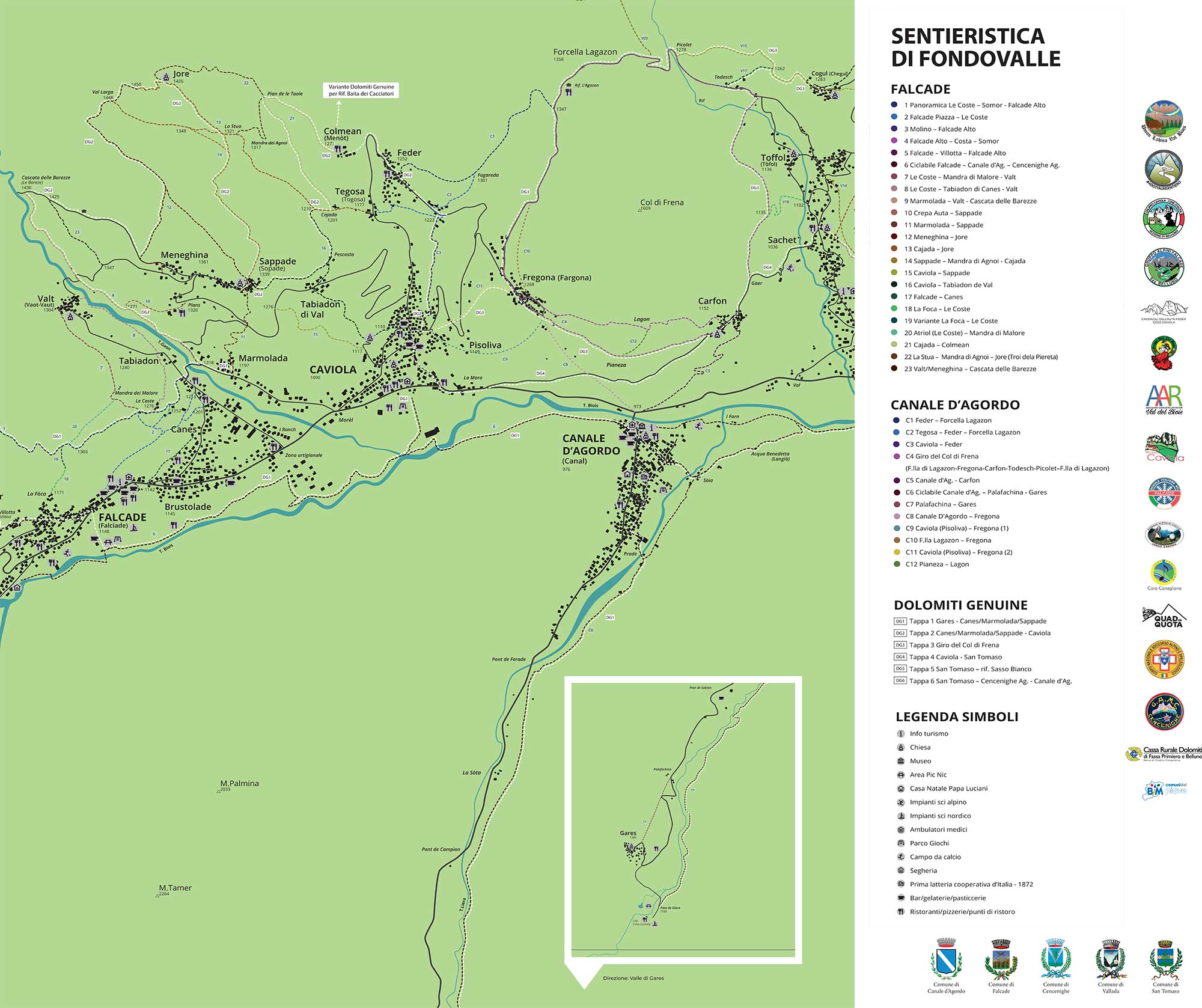 Informazioni sul Cammino delle Dolomiti Genuine e pieghevoli con la descrizione dei 6 itinerari con mappa ed info tecniche dei percorsi potranno essere richiesti al Consorzio PromoFalcade Dolomiti in centro a Falcade.