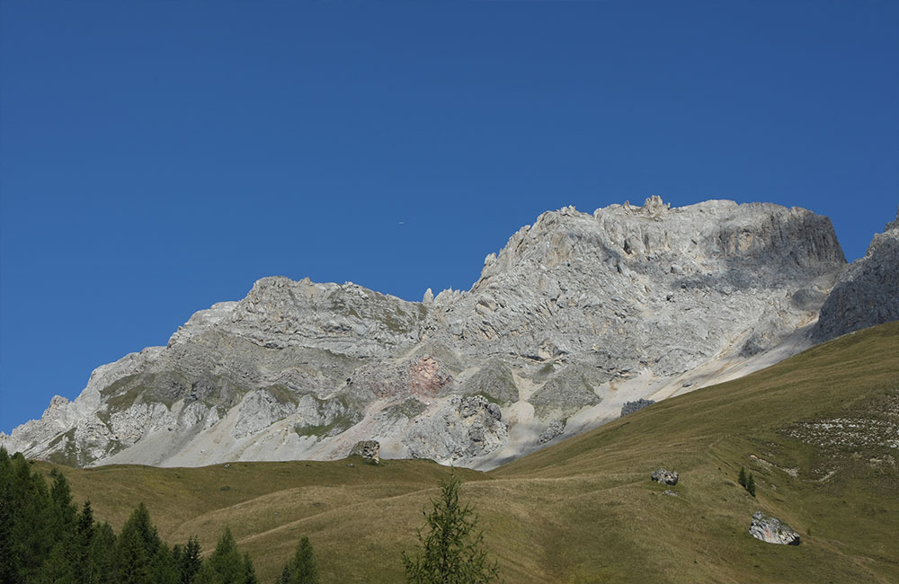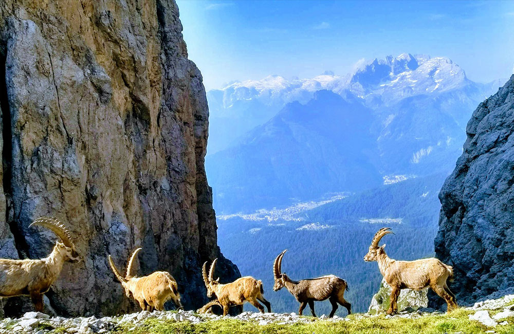 L’ambiente è impervio e ai suggestivi panorami sulla parete Sud della Marmolada si accompagnano frequenti incontri con la fauna locale.