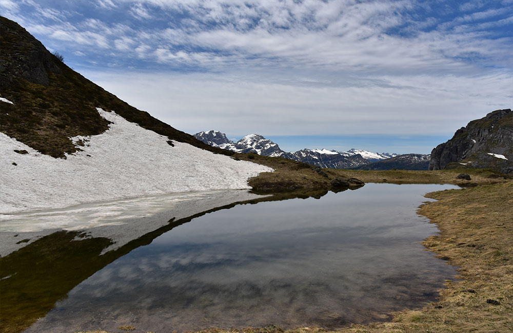Si parte dall’abitato di Colmean nei pressi di Feder a quota 1300 m. direzione Baita Cacciatori.