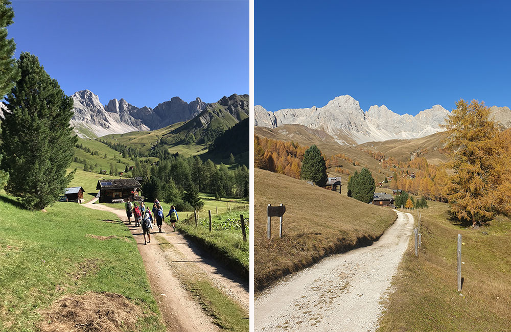Da qui si scende lungo la Val di Franzedàs fino al Passo del Còl Bechèr (2312 m) per proseguire alla Baita Giovanni Paolo I (1865 m) o alla sottostante Baita dei Cacciatori (1745 m).