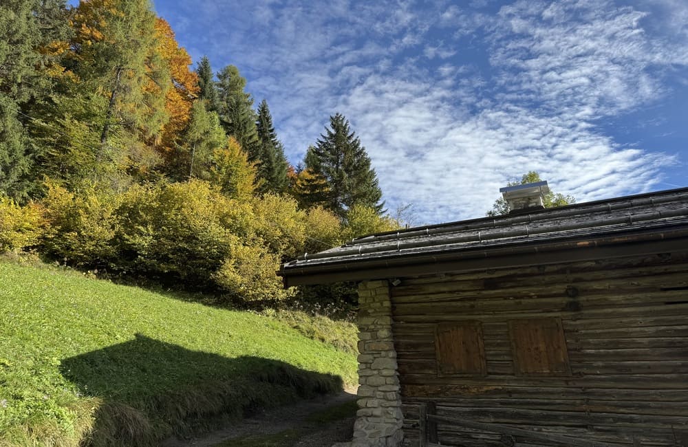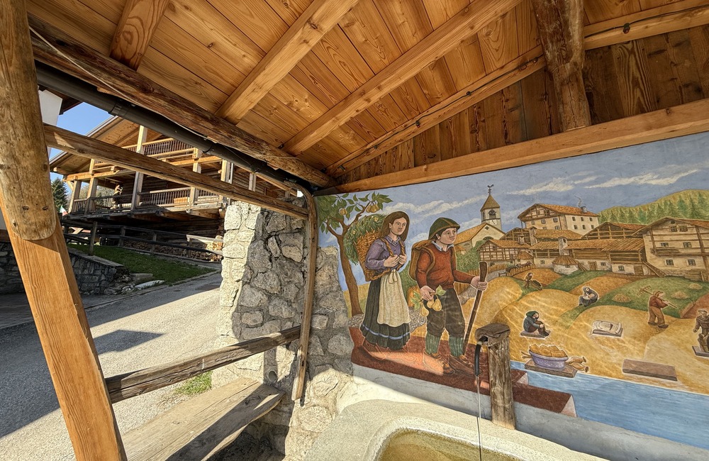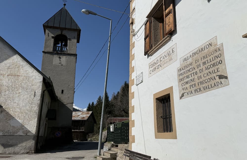 Passeggiata attraverso le tipiche frazioni alte di Feder 1267 m, Fregona 1268 m e Carfon 1156 m, collegate da una comoda strada secondaria/forestale panoramica non percorsa da auto.