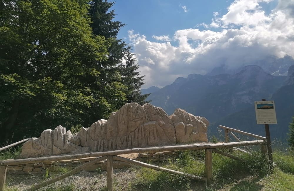 Il percorso, chiamato Geo Walk, si sviluppa in 7 tappe con installazioni interattive e postazioni ludico-didattiche. Il punto centrale è il suggestivo Timone Panoramico, situato proprio sulla vetta, da cui puoi abbracciare con lo sguardo l’intera storia geologica delle Dolomiti. Una grande linea del tempo e pannelli informativi con attività coinvolgenti arricchiscono l’esperienza, perfetta per adulti e bambini curiosi.Un viaggio a ritroso nel tempo lungo un sentiero di 30 m dove ogni metro corrisponde a 10 milioni di anni, lungo il percorso si attraversano le ere geologiche e le fasi dello sviluppo delle Dolomiti