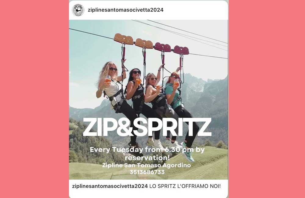 La Zipline è un percorso su fune a San Tomaso Agordino, la più alta delle Dolomiti con la sua altezza da terra di 160 metri, che ti farà sfrecciare in tutta sicurezza per una discesa lunga 1,6 km con un dislivello di 260 metri.