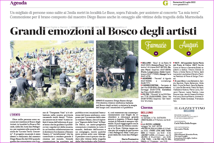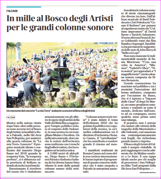 Ritorna l’appuntamento con la musica d’alta quota nello scenografico anfiteatro naturale del Bosco degli Artisti, in località Le Buse a Falcade, uno dei più fiabeschi sentieri tematici della Val del Biois.