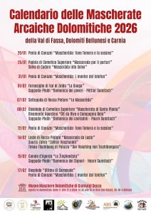 Scopri il programma 2026 delle altre sfilate carnevalesche delle Mascherate Arcaiche Dolomitiche che ogni anno animano le domeniche del Carnevale nelle Dolomiti!