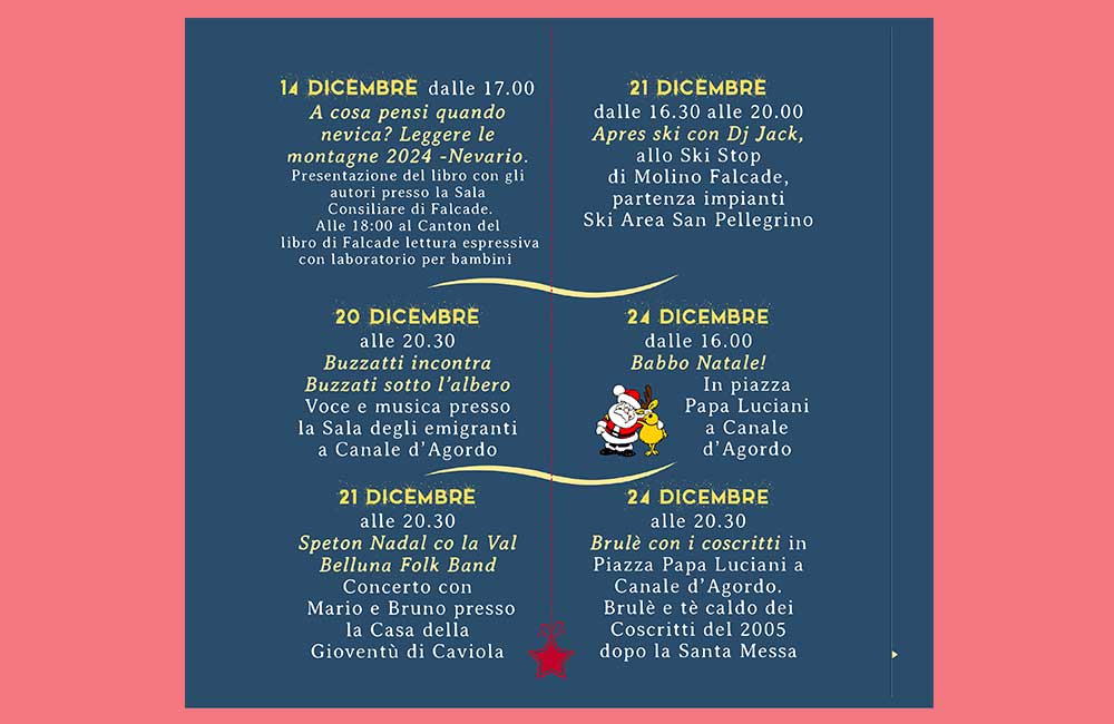 - sabato 20 dicembre 2025 “Natale in punta di piedi” – balletto a cura dell’Associazione Danza Agordina;