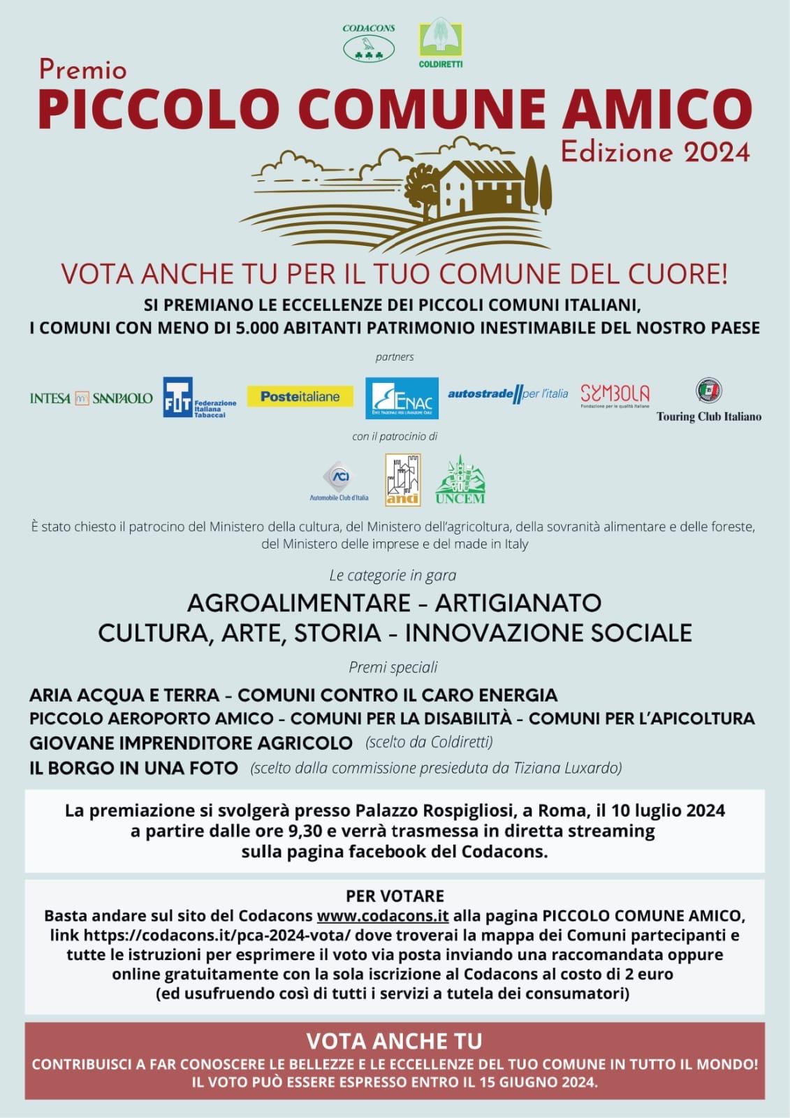Le votazioni termineranno il 15 giugno ed il Comune Amico vincitore verrà premiato il 10 luglio a Roma.