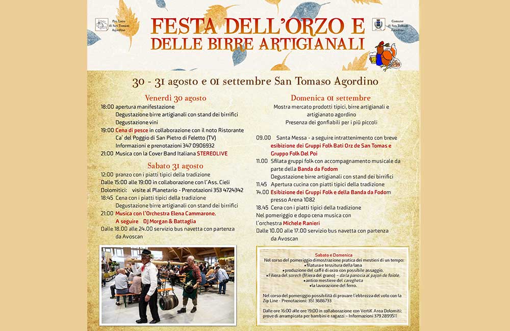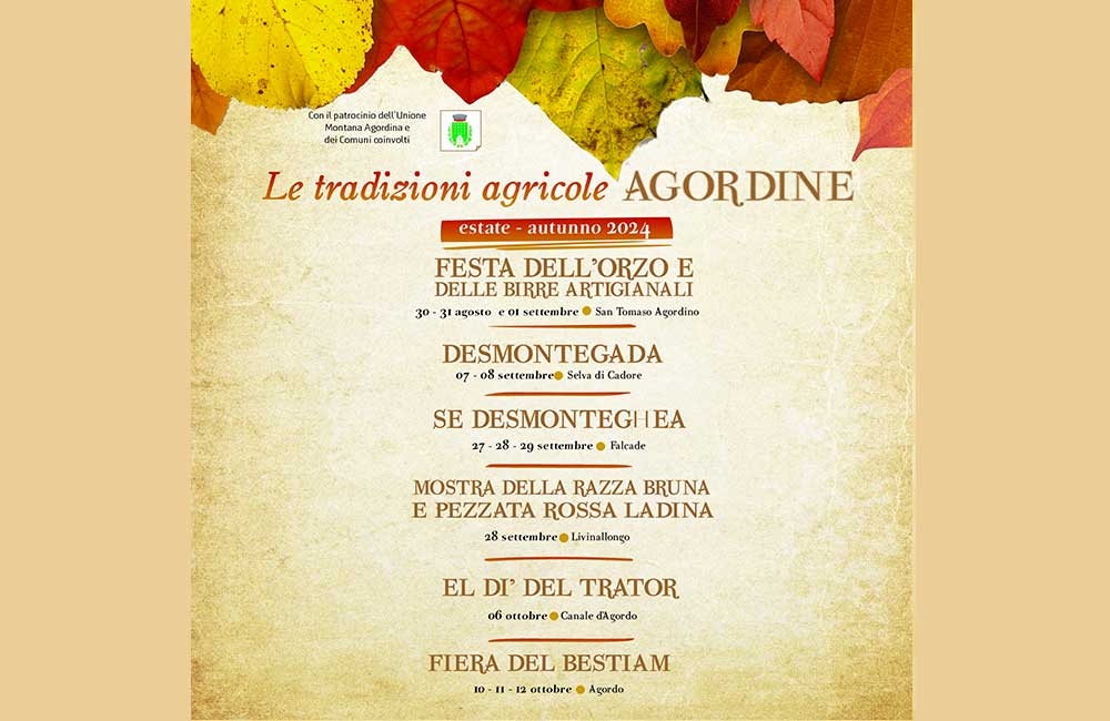 L’arrivo di settembre in montagna porta con sé temperature più miti e boschi che si tingono di mille colori, ma segna anche il ritorno delle feste autunnali in agordino e di Se Desmonteghea.