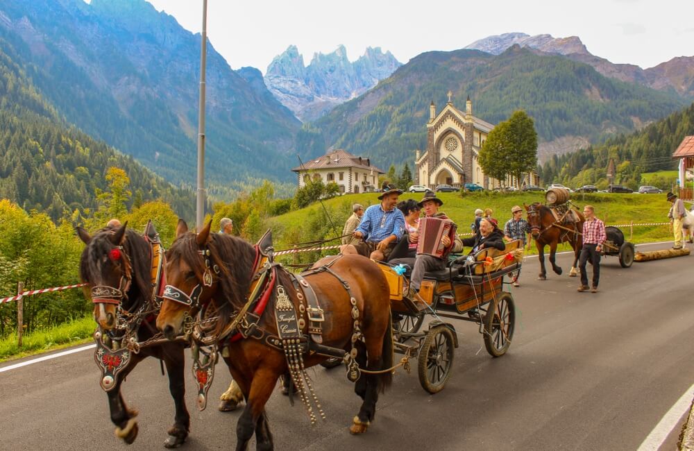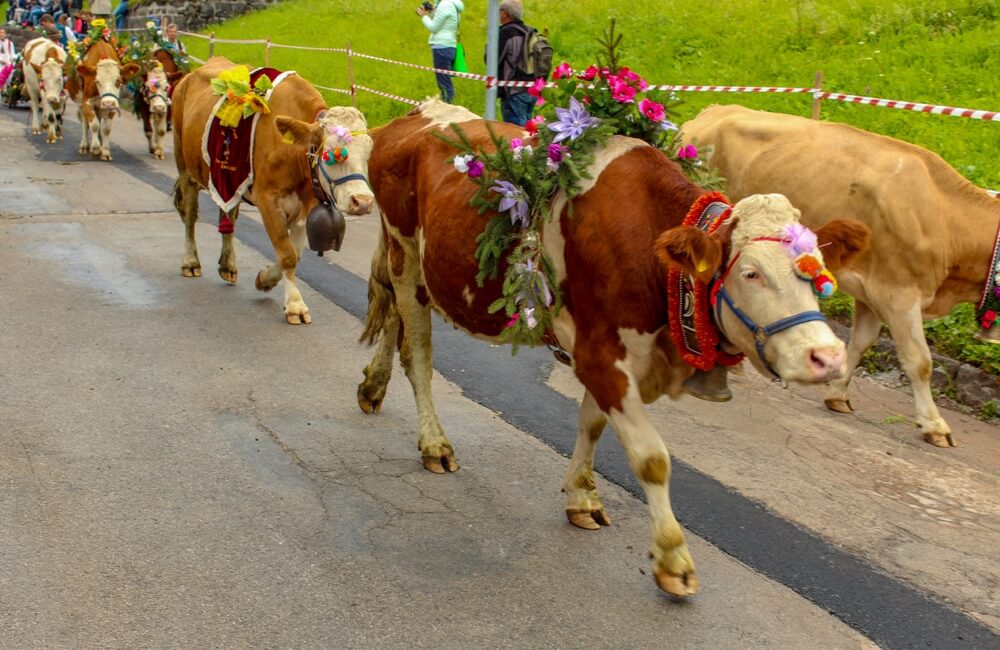 Le mucche per l’occasione sono tutte addobbate con colorate ghirlande di fiori e campanacci e sfilano per le vie del centro accompagnate dai loro mandriani. Quest’evento, che in Valle del Biois si svolge generalmente l’ultimo weekend di settembre, ma in date diverse si ripete in tutte le vallate delle Dolomiti Unesco bellunesi, segna la fine del periodo estivo ed il rientro delle mandrie dai pascoli montani.