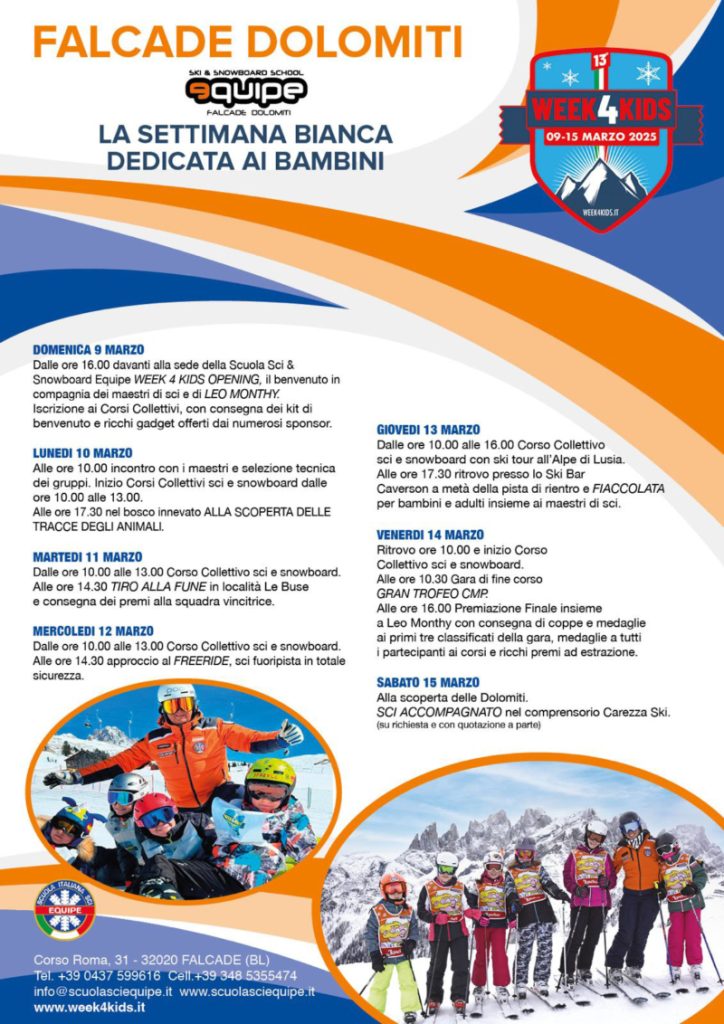 Per info su prenotazioni e corsi sci durante la settimana Week for Kids: www.scuolasciequipe.it
